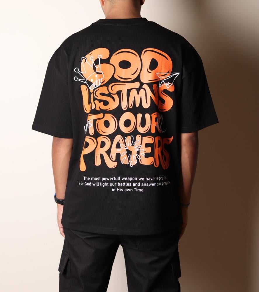تيشيرت قطن عالي الجودة بلون أسود أنيق مع كتابة برتقالية بارزة في الظهر تضيف جرأة وتميز، بينما يزين الصدر لوقو البراند البسيط ليعكس لمسة أنيقة ومرتبة.