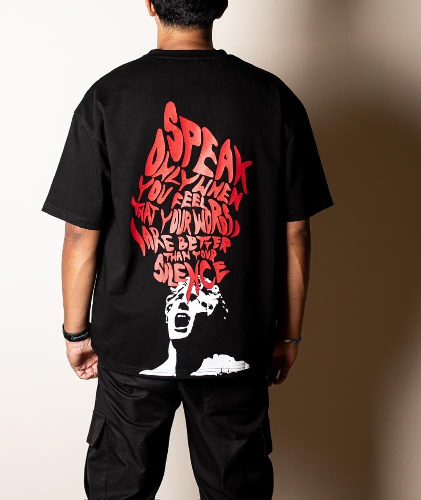 تيشيرت قطن عالي الجودة بتصميم مميز مطبوع في الجهة الخلفية، حيث يظهر شخص يصرخ من البؤس . بينما يأتي من الأمام بتفاصيل بسيطة تحمل لوقو البراند فقط، ليجمع بين البساطة من الأمام والتميز من الخلف.